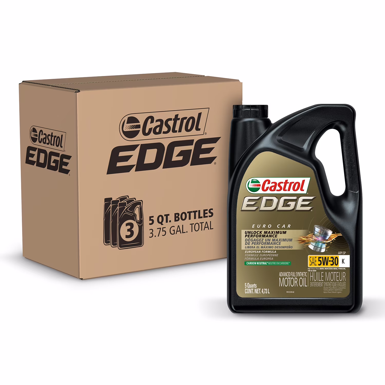 Castrol Edge 5W-30 K Advanced Full Synthetic Motor Oil, 5 Quarts, Case of 3