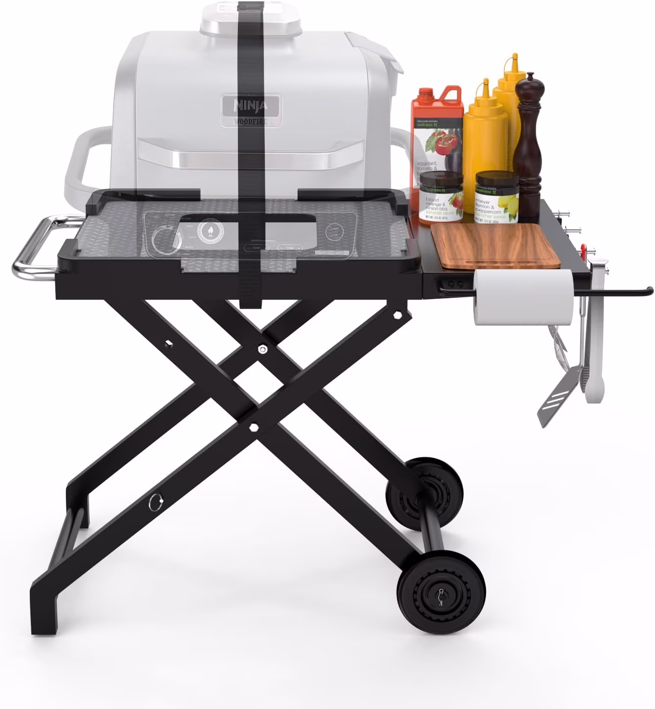 Collapsible Grill Stand for Ninja Woodfire OG701 OG800 OG900 Series & OO101 Pizza Oven Grill,Outdoor Table Cart with Side Shelf for Ninja XSKSTAND XSKUNSTAND Woodfire OG 700 Series,Foldable